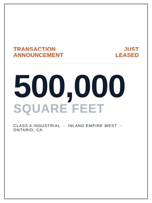 Logistics Company Secures 500,000 SF Class A Distribution Facility in Ontario, California